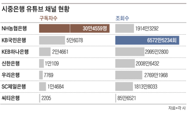 시중은행 마케팅 담당자는 "유튜브를 활용하면 딱딱하고 지루하다는 금융에 대한 인식을 효율적으로 바꿀 수 있고 청소년이나 대학생 같은 잠재고객에게 은행 브랜드를 친숙하게 만드는 효과를 볼 수 있다"며 "아직 초기단계여서 전문 유튜브 마케팅 업체나 유명 유튜버들과의 협력을 통해 콘텐츠의 질을 개선해야한다"고 했다.